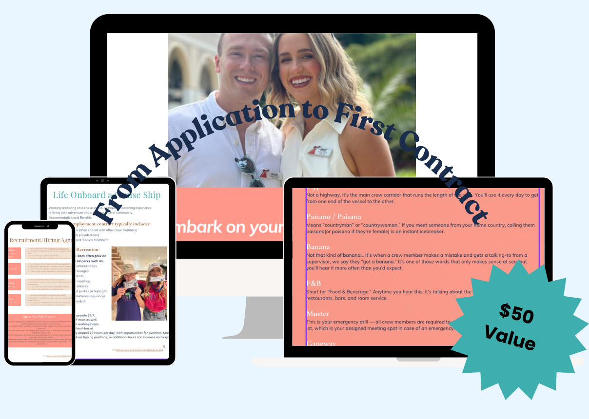 It’s a quick, powerful roadmap that shows you exactly how to find, apply, and prepare for your first job at sea. You’ll skip the guesswork, learn what cruise lines are really looking for, and know how to stand out — all for less than the price of lunch.